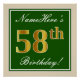 Poster Elégant, Vert, Faux Or 58ème anniversaire + Nom