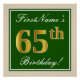 Poster Elégant, Vert, Faux Or 65ème anniversaire + Nom