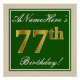 Poster Elégant, Vert, Faux Or 77ème Anniversaire + Nom