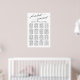 Cette élégante affiche de calligraphie blanche et noire est parfaite pour un mariage simple. Le design neutre présente une enseigne minimaliste décorée avec une typographie romantique et fantaisiste. Ce poster mariage offre suffisamment de place pour accueillir jusqu'à 16 tables (160 convives). En plus du placement de chaque invité, personnalisez ce panneau avec les noms de la mariée et du marié et la date du mariage. Ce tableau de sièges peut être utilisé pour une réception de mariage ou tout événement spécial.