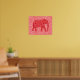 Graphique numérique multimédia mixte d'un éléphant contre un arrière - plan en carrelage arabesque - motif de fleurs dans les tons rouge profond à rouge corail avec un arrière - plan corail rouge et blanc