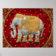 Poster Eléphant Indien inscrit rouge et or
