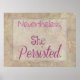 Une expression qui est rapidement devenue un cri de ralliement pour le mouvement pour les droits des femmes, ainsi que pour les mouvements politiques de droits civiques en général. La force de persister continuera à gagner la journée, dans le temps, sur tous les obstacles. Une façon parfaite de montrer votre soutien... Elle A Néanmoins Persisté.
