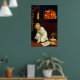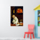 Décorez votre mur d'une belle affiche d'Halloween vintage avec un garçon effrayé avec un livre effrayant la nuit, peint par l'illustrateur et artiste commercial américaine Ellen Hattie Clapsaddle.