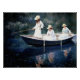 "In the Norvégienne Boat at Giverny" est une représentation sereine et intime d'une scène nautique. Le tableau présente l'épouse de Monet, Alice, et peut-être l'un de leurs enfants, tranquillement assis dans un petit bateau à rames, connu sous le nom de "Norvégienne", sur les eaux calmes près de leur maison à Giverny. Le cadre est tranquille, avec des reflets doux du bateau et des figures dans l'eau, entouré d'une végétation luxuriante. La brosse lâche capte le jeu de la lumière sur l'eau et le mouvement doux du bateau, créant une atmosphère paisible. Le tableau illustre une fascination pour l’eau et les réflexions, thèmes qui deviendraient au coeur de l’oeuvre de Monet. Cette oeuvre est un bel exemple de la capacité à capturer les moments tranquilles et contemplatifs de la vie quotidienne dans la nature.