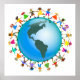 Belle illustration d'un groupe de garçons et de filles heureux et divers tenant la main autour d'un globe avec une carte de l'Amérique du Nord et du Sud. Image disponible sur divers cadeaux et produits. Customisez si vous préférez et modifiez la couleur de l'arrière - plan ou ajoutez du texte.