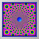 Dans cette image bidimensionnelle, l'agencement des lignes et le design donnent la perception d'un espace courbé, avec une sphère flottante. Les couleurs de cette image ne sont pas "Web safe" et donc l'air lavé sur le moniteur.