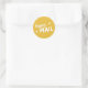 Un étiquette d'emballage qui dit "happy mail" en blanc sur un arrière - plan jaune. Ce serait parfait pour toute personne recherchant des étiquettes d'emballage mignons ou des scellés d'enveloppe pour une petite entreprise ou pour décorer des colis et des paquets à envoyer à des amis.