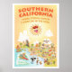 Une affiche lumineuse et charmante montre un dessin spectaculaire de la Californie du Sud - Los Angeles, Anaheim, Long Beach, San Diego. Cette scène pleine de charme a tout pour plaire - un surfeur y accroche dix fois tandis qu'une sirène s'installe sur un rocher, qu'une baleine meurtrière saute de l'eau, qu'un couple de plage musclé flex to impress, des animaux de zoo attendent les touristes, qu'un taureau frappe dans un chasseur de taureaux, et bien plus encore...
