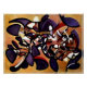 L'affiche présente le tableau "Peinture Study for Silent Formation" de Carmen Fine Art dans des tons orange, violet, noir et blanc dans un style coloré abstrait. "Le violet et le jaune sont mes couleurs." (Stewart Rahr)