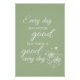 A calming and hopeful message for life’s ups and downs. This minimalist sage-and-white poster features the uplifting quote “Every day may not be good, but there is good every day,” presented in elegant script typography with delicate floral line art. Perfect for encouraging mindfulness and gratitude, this inspirational wall art brings warmth and positivity to any space. Ideal for bedrooms, living rooms, offices, classrooms, therapy rooms, or meditation spaces. It also makes a thoughtful gift for friends, loved ones, or anyone who appreciates daily encouragement. • Clean black background with white lettering • Elegant script and modern typography mix • Soft floral illustration for a peaceful feel • Meaningful gift for any occasion A gentle reminder to find the good—every single day.
