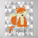 Cette peinture murale présente un adorable renard de bébé avec l'expression "F est pour Fox". Un arrière - plan gris avec des triangles est une pièce d'art unique pour n'importe quel mur !