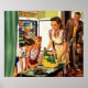 Poster Famille vintage dans la cuisine Maman Papa Enfants