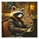Poster Fantasy Cute Piano Racoon Playing