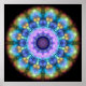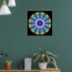 Alors qu'un kaléidoscope est un motif en constante évolution de formes et de couleurs, il s'agit d'une version numérique fixe de cela. Motifs complexes qui sont répétés dans un cadre circulaire. Ce kaléidoscope montre un motif en bleu lilas et violet, les éléments brillants le font ressembler à une bougie derrière une vitre en tache