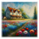 Agritourisme dans un champ de fleurs Poster Cette oeuvre d'art rustique capture la beauté intemporelle d'une ferme confortable entourée de fleurs florissantes, parfaite pour ajouter une touche d'élégance à la campagne dans votre maison.