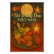 Affiche festive de style rétro de la soirée du Festival Mid-Autumn au Vietnam, avec pour thème un cou de mâm magnifiquement arrangé ỗ Trung Thu (table de fête du festival). Sur le plateau : les petits gâteaux traditionnels (bánh trung thu) à farce de lotus et de haricots rouges, les fruits en forme d'animaux (pomelo sculpté dans le lapin, l'amidon, les bananes, les pommes, les fruits du dragon),