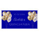 Pour une fête de Quinceañera féminine et glamour, 15e anniversaire. Un fond bleu royal. Décoré de ballons dorés. Personnalisez et ajoutez un nom, une date. Lettres blanches. Le nom est écrit avec un style de lettrage moderne à la main.