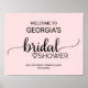 Cette affiche de bienvenue de la douche nuptiale rose vif est parfaite pour une douche nuptiale élégante. Le design est composé d'une police cursive romantique et douce sur un arrière - plan rose ballet clair, charmant et délicat. Customisez l'affiche avec le nom de la future mariée, ainsi que la date et l'emplacement de la douche nuptiale.