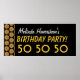 Cette 50e fête d'anniversaire personnalisée Gold et Black Stars est une bannière d'anniversaire amusante et moderne pour la célébration de votre 50e anniversaire.