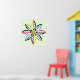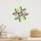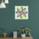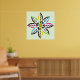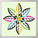 Décor Feuille-Fleur moderne, design d'affiche abstrait, avec une fleur ses pétales de feuilles colorés au centre jaune. Deux en noir, jaune, deux en noir, aqua/turquoise, deux en noir, rose fushia et deux en noir, vert citron. Dans chacune d'elles il y a des feuilles blancs plus petits. Cette affiche de carré d'inspiration abstraite de nature a une atmosphère rétro et est entièrement personnalisable et l'arrière - plan vert de la place peut être changée. Style d'art populaire primitif.