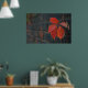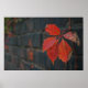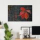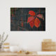 Une affiche montrant des feuilles rouges avec un mur sombre en arrière - plan