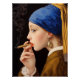 Un chef-d'oeuvre classique reçoit un relooking moderne et rebelle. Cette oeuvre d'art hilarante réimagine l'emblématique "Girl with a Pearl Earring" de Vermeer, qui prend une pause fumée décontractée et cool. Parfait pour les passionnés d'histoire de l'art avec un sens de l'humour, cette pièce ajoute un esprit pointu et sophistiqué à tout espace. C'est une pièce de déclaration idéale pour un salon, un dortoir ou un bureau, et une entrée de conversation garantie.
