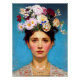 "Floral Flair" Ruth - Art & Floral Society. Le mari de Ruth est banquier. Avec ses fleurs sur la tête comme un casquette extravagant, ce portrait suggère qu’elle fait autant partie du décor que les fleurs elles-mêmes. Ce portrait aquarelle stylisé est un regard léger et décalé sur la vie.