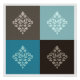 Défiler et feuille damassé patron dans des carrés contrastés en teals et bruns avec une bordure blanche.