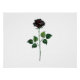 Rose noire symbolique dessinée artistiquement avec des tiges et des feuilles vertes sur fond blanc. Rose noire.