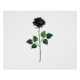 Rose noire symbolique dessinée artistiquement avec des tiges et des feuilles vertes sur fond blanc. Rose noire.