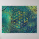 Belle affiche de la Fleur de Vie dorée sut fond noir. Je l'ai utilisé pour décorer mon cabinet de massages. Très graphique en plus de la signification géométrise et spirituelle.