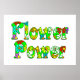 Partagez le plaisir des années 1960 et 1970 avec ce design rétro coloré avec les mots - Flower Power - et les fleurs dans les lettres.