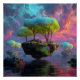 Poster Floating Turquoise Tree Islands Neon Sky