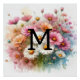 Poster Floral aquarelle monogramme rose marguerites fleur