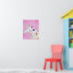 Pretty white unicorn with flowers in its mane on a pink background, on this art poster.
