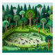 Ce design imite l'aspect de l'art découpé en papier superposé pour créer une scène forestière luxuriante. De multiples nuances de vert sont utilisées pour représenter les arbres, les arbustes et le sol de la forêt. Les détails complexes comprennent les petits animaux, les oiseaux et les insectes cachés dans toute la scène. L'effet superposé donne l'illusion de la profondeur, créant une apparence 3D. Cette affiche séduit les amoureux de la nature, les amateurs d'artisanat et ceux qui recherchent l'art texturé et tactile.