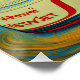 This painting depicts a vibrant red and white racing helmet with sponsor logos, set against a dramatically swirling blue and yellow background in a textured, expressive style reminiscent of Van Gogh.