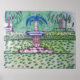 Peinture de la fontaine dans Forsyth Park à Savannah, Géorgie.Belles couleurs d'eau bleue, d'herbe verte et d'arbres.La fontaine de Savannah historique. © Copyright Oeuvre artistique de Debra Carr