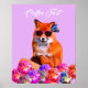 Renard mignon avec lunettes de soleil et papillon. Coffee first - text- facile d'ajouter votre propre texte.
