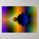 Art fractal Mandelbrot design aux couleurs bleu royal, violet, jaune-orange, noir et turquoise.