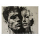 Portraits fragmentés de deux individus, unis dans une composition abstraite qui explore la complexité des émotions humaines. La technique expressive et la palette monochrome intensifient l'impact visuel.