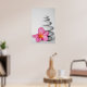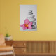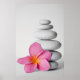 Fleur frangipanienne parfaite avec des galets de plage blancs arrangés en cheminée