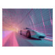 Buckle up for a warp-speed joyride through time and neon light. This electrifying artwork captures a sleek sports car hurtling through a digital dreamscape—pure velocity painted in pinks, purples, and futuristic flair. It's a cyber rush for your wall and your soul.