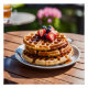 Une pile de gaufres avec des baies et du sirop sur le dessus.