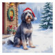 Poster German Wirehaired Pointer Snowy Lodge Santa Hat