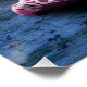 C'est une vue surréaliste extraordinaire d'une girafe rose comme elle est dans la steppe la nuit. Au fond, on voit des montagnes et une grosse boule de terre.