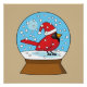 Illustration d'un globe de neige avec un cardinal rouge mignon portant un bonnet de santa claus rouge sous une neige dans un ciel bleu vif. Ce joli dessin humoristique de noël waterglobe est une idée cadeau pour les amateurs de vacances hivernales et, oiseaux et amoureux des animaux.