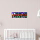 Pour cela, je propose un cadre (et même plusieurs cadres superposés et légèrement transparents) pour créer une composition unique et originale. Ces cadres sont au nombre de 24 pour les 24 heures de la journée humaine.Ces cadres sont de formes géométriques: cercle, carré et octogone. Les cercles se déclinent en dégradé dans les tons de bleu et de pourpre, les carrés dans les tons orangés rouges et les octogones passent du vert au violet.Le choix des couleurs et des formes s'accordent en 3 types de "moment" constituant un jour: soit 8heures de sommeil, 8 heures de travail et 8 heures de "détente", les repas sont comptés dans ce moment détente A cela s'ajoute 7 "Objets" (à la fois des objets que j'ai possédé ou qui étaient chez moi, que j'ai pris en photo et quelquefois des morceaux de mes propres travaux: ici il s'agit d'un série de livres miniatures. Chaque élément (cadre coloré et objets) sont modifiables en taille, ils peuvent être changés de place. Ainsi on peut modifier l'ordre des superpositions de couleur. Avec 31 calques les possibilités deviennent énormes. Ce premier panneau est un panneau test, qui me permettra d'affiner et de modifier mes images. L'idée de départ étant plus complexe et faisant intervenir les fuseaux horaires du lieu des amateurs d'Art potentiels, je n'ai conservé que les cadres. ----- Poster 32"x12" - Available in canvas print.