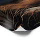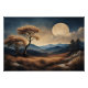 A magical night scene with a bright full moon illuminating a golden field. The contrast between the yellow trees, blue mountains in the background, and starry sky creates an atmosphere of peace and mystery.